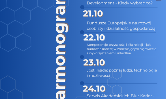 W środę 22 października na Campusie A będzie miało miejsce spotkanie pt.: „Kompetencje przyszłości i siła relacji – jak budować karierę w zmieniającym się świecie z wykorzystaniem LinkedIna.” prowadzone przez Klaudię Dolatę oraz Iwonę Żurek. Podczas wydarzenia uczestnicy poznają kompetencje, które pozwalają być konkurencyjnym na rynku pracy, a także dowiedzą się, czym są transferable skills i dlaczego są tak istotne w rozwoju zawodowym. Omówione zostaną sposoby skutecznego rozwijania umiejętności miękkich cenionych przez pracodawców oraz znaczenie relacji jako drugiej połowy sukcesu zawodowego i metody ich budowania. Uczestnicy zobaczą, jak proste gesty i codzienne działania tworzą trwały kapitał relacyjny, a także jak platforma LinkedIn może wspierać nawiązywanie kontaktów, zdobywanie praktyk i budowanie marki osobistej. - link do wydarzenia-