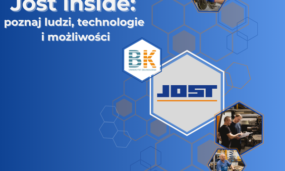 W czwartek 23 października odbędzie się wyjazd do firmy JOST Polska Sp. z o.o. pt. : „JOST inside: poznaj ludzi, technologie i możliwości.”. Podczas wizyty uczestnicy będą mieli okazję poznać procesy produkcyjne realizowane w firmie oraz nowoczesne technologie wykorzystywane w działalności przedsiębiorstwa. Spotkanie ma na celu poszerzenie wiedzy praktycznej uczestników oraz umożliwienie im bezpośredniego kontaktu z realnym środowiskiem przemysłowym. - link do wydarzenia-